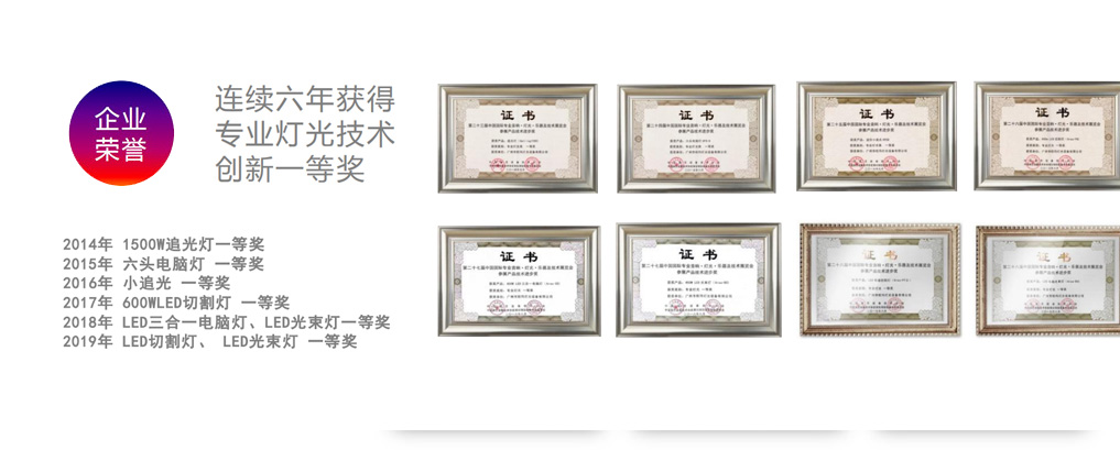 歐瑪燈光參與制定了電腦燈及LED燈具等多項(xiàng)行業(yè)標(biāo)準(zhǔn),通過了ISO9001、ISO14001、OHSAS18001管理體系,多次獲得“演藝設(shè)備優(yōu)質(zhì)產(chǎn)品獎”“PALM展產(chǎn)品技術(shù)一等獎” 2016年 被評為“中國演藝設(shè)備新銳企業(yè)”。歐瑪燈光先后成為中國演藝設(shè)備技術(shù)協(xié)會監(jiān)事單位、中國舞臺美術(shù)學(xué)會理事單位,廣東演藝設(shè)備行業(yè)商會監(jiān)事長單位,廣東省舞臺美術(shù)研究會副會長單位,飛利浦照明特殊光源舞臺娛樂OEM戰(zhàn)略合作伙伴等;獲得演藝設(shè)備工程綜合技術(shù)能力燈光壹級,中國舞臺美術(shù)學(xué)會專業(yè)舞臺燈光、音響、舞臺設(shè)計、安裝及調(diào)試資質(zhì)等級甲級等證書.