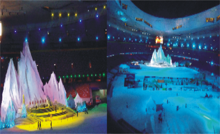 2008年8月23日晚,奧運會青島帆船賽閉幕聯歡晚會在天泰體育場舉行,巨型舞臺結合現代時尚勾勒手法,利用幾何透視效果,讓整個舞臺恢宏大氣