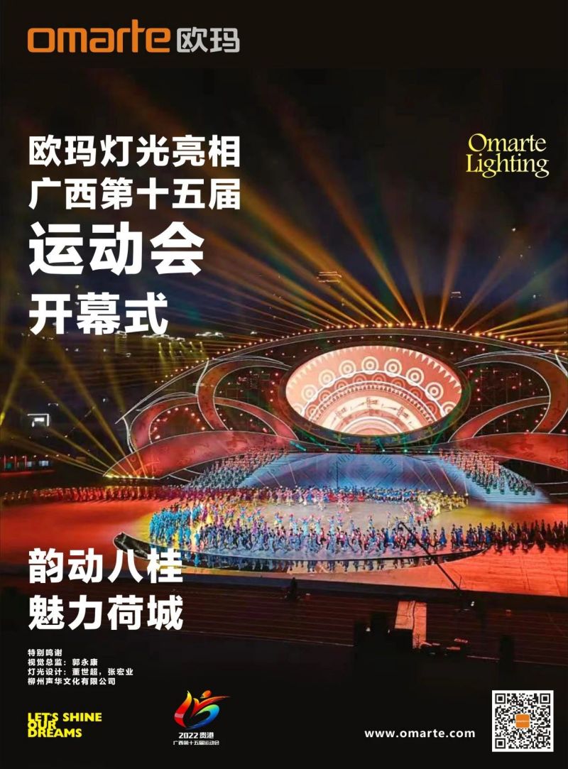 開幕式文體展演由深圳太合兄弟誠意出品,全程采用歐瑪三合一電腦燈(Moore330)、電腦搖頭圖案燈、大光束燈等設備共300多臺。