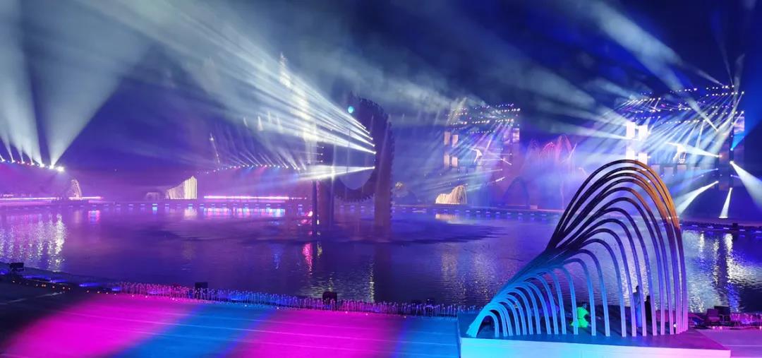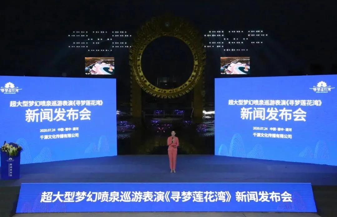 8月7日晚,超大型夢幻噴泉巡游表演《尋夢蓮花灣》在山西晉中百里瀟河生態產業區“中國·瀟河文藝小鎮”中心地帶“蓮花灣廣場”進行全球首演。