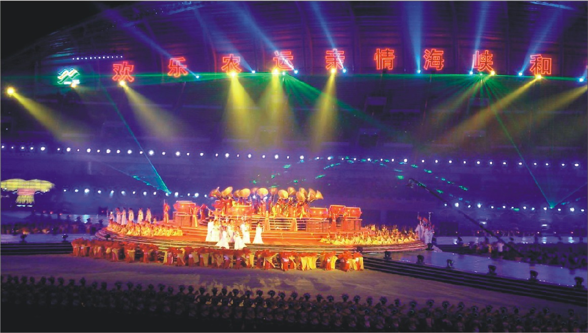 綠色農運,金色夢想。第六屆全國農民運動會開幕式 2008年10月26日晚在泉州海峽體育中心舉行,這是和