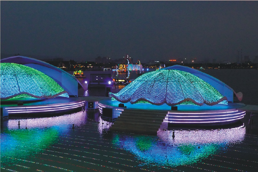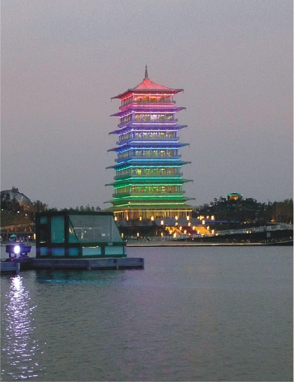 大型水上舞臺(tái)演出燈光秀是2011年西安世園會(huì)的精彩看點(diǎn)和重要項(xiàng)目,它以生態(tài)、環(huán)保、共筑綠色家園為主題,綜合運(yùn)用燈光、水幕、