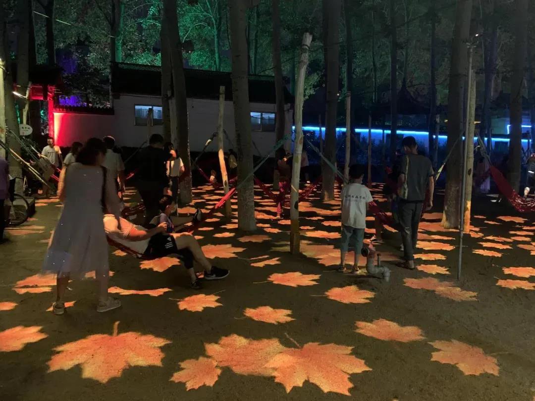 金寶星夜的螢火蟲景觀,你可伸手觸摸藏身花草樹木中的螢火蟲,亦可追逐飛舞的螢火蟲,來一個零距離親密接觸,感受螢火流光飛揚的奇幻和浪漫。閃閃發光的螢火蟲,與星光熠熠的夜空,交相輝映,猶如滿天星河在你身邊流淌,如夢如幻;大型地面互動,你可以踏花而行,看五彩斑斕的鮮花在夜晚里燦爛綻放,每棵樹上的光遇到觀賞者接近通過時,光芒的顏色會產生變化并且發出特別的音色;進入時空隧道仿佛走進了一個夢幻的王國,而我們就是這個童話世界里的人,精神一下子開始變得愉悅起來。
