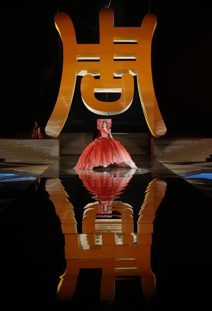 本場時裝秀舞臺設計匠心獨運: T臺兩側是兩池碧水,與兩側臺道形成川字型,寓意周口是三川交匯之地、“上善若水”的老子故里。而屏幕正中,與大屏幕齊的“周”字篆書印章為主體圖案的裝飾,彰顯著周口豐厚的文化底蘊。市委、市政府將以2020首屆周商大會為開端,之后每年舉辦一屆,時裝秀專場將作為周商大會重要內容之一,助力周口對外開放,助力全市快速發展。