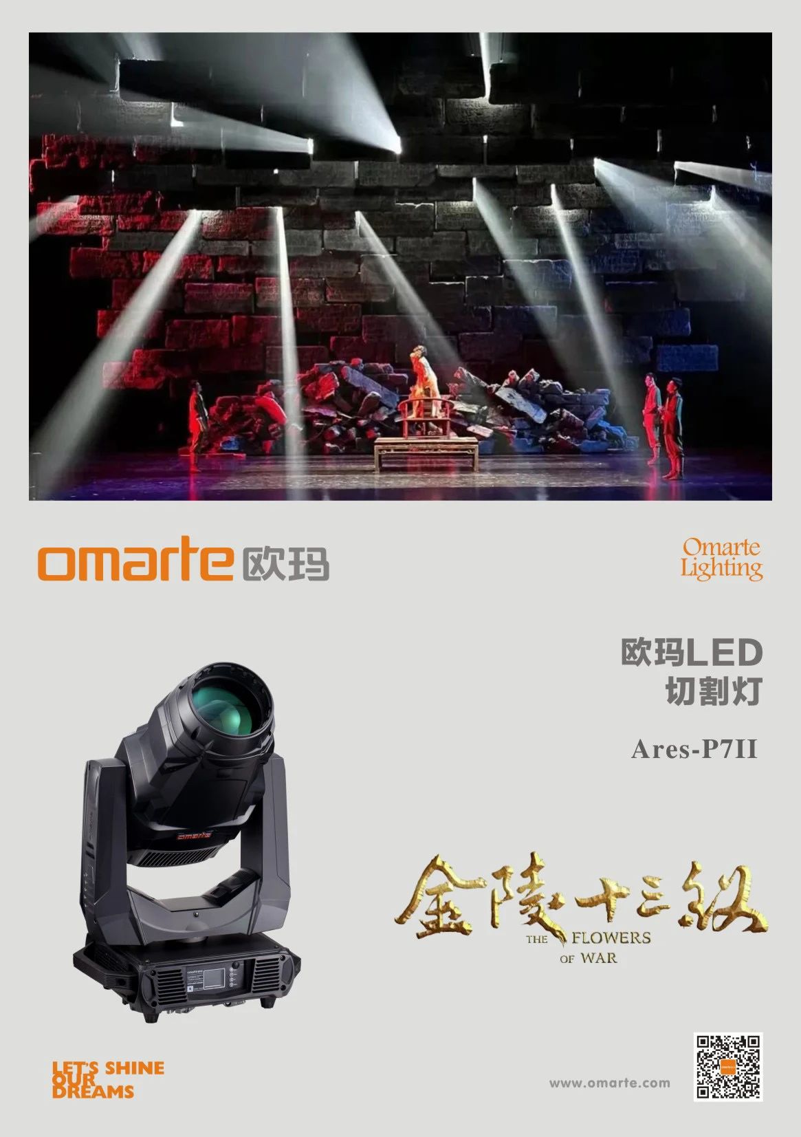 讓觀眾感受出光中有境、境中有景、景中有戲、戲中有史、史中有鑒、鑒中知興替的內(nèi)涵。同時(shí)燈光設(shè)計(jì)希望通過(guò)《金陵十三釵》中的每一束光,不僅是在追溯和紀(jì)念這段歷史,又是在傳遞和抒發(fā)國(guó)人的家國(guó)情懷。