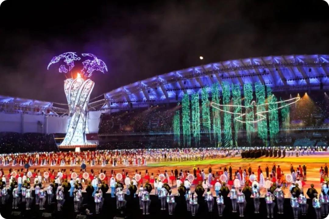 軍運會閉幕式已然深深烙上了中國印記,留下武漢足跡,相比開幕式,閉幕式的文藝表演,融入了更多的荊楚文化、漢派藝術。《友誼天長地久》唱響,觀眾們搖晃著手機,把現場變成蒼穹星海。身著發光服飾的演員涌入觀眾席和舞臺,像一條條友誼的紐帶,把現場連接在一起。