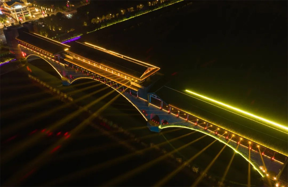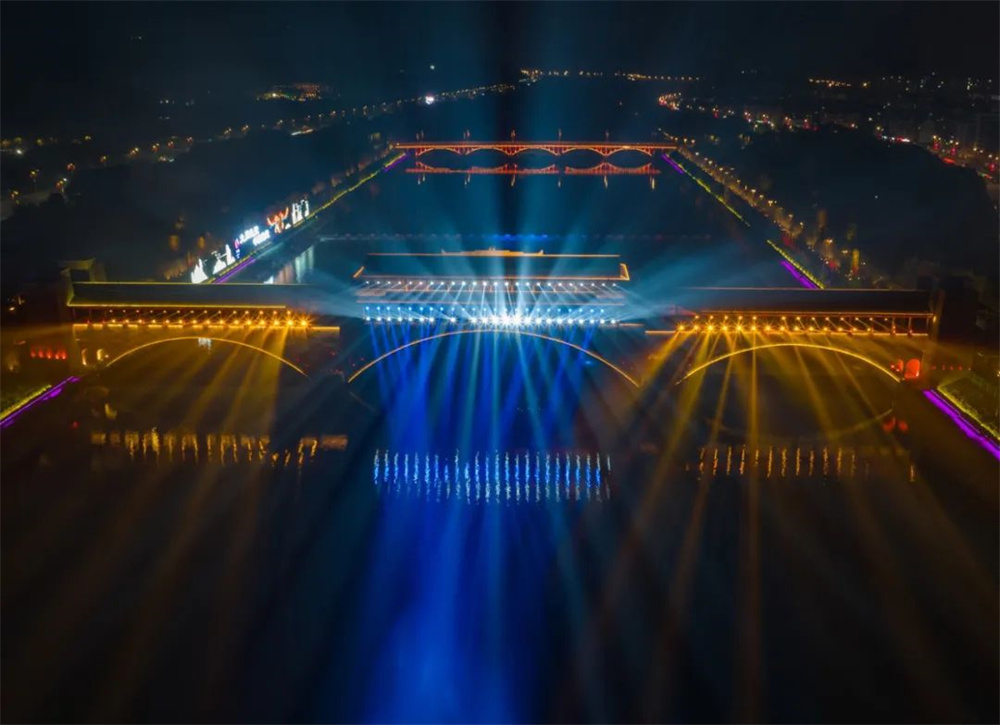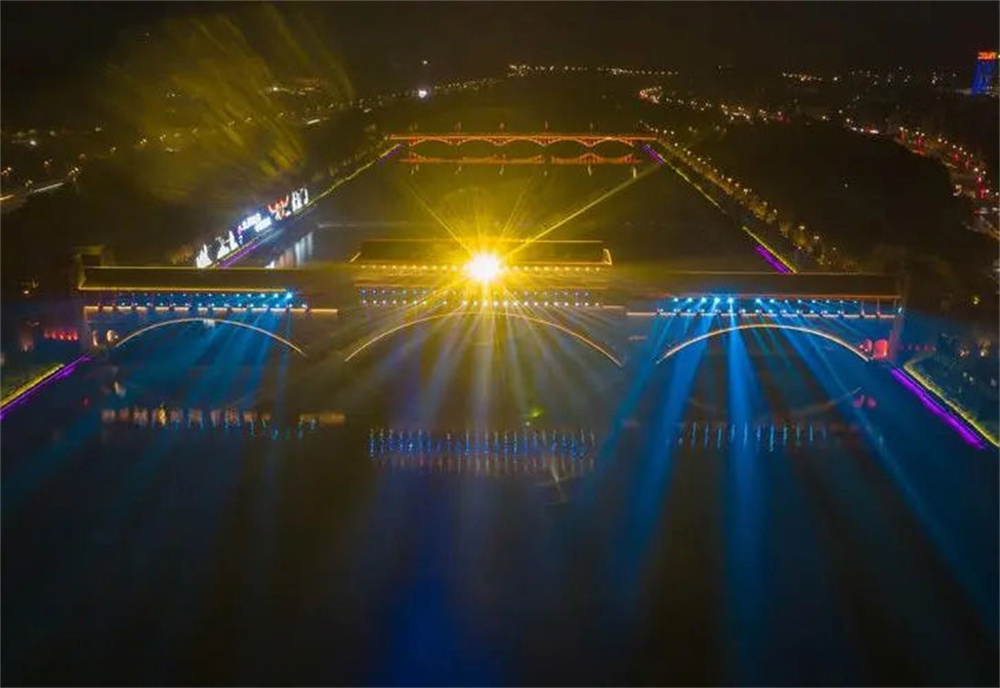 安昌河兩岸流光溢彩,在粼粼碧波的映襯下,璀璨的燈光伴隨著一首首羌族歌曲,交織出一幅幅精美的畫卷,以燈光傳情,以光影達(dá)意,不斷變化的光影,展現(xiàn)著北川日新月異的變化。禹王橋的燈光秀與巴拿恰的燈光亮化、音樂噴泉交相輝映,已成為了北川發(fā)展活力和文化魅力的亮麗名片。