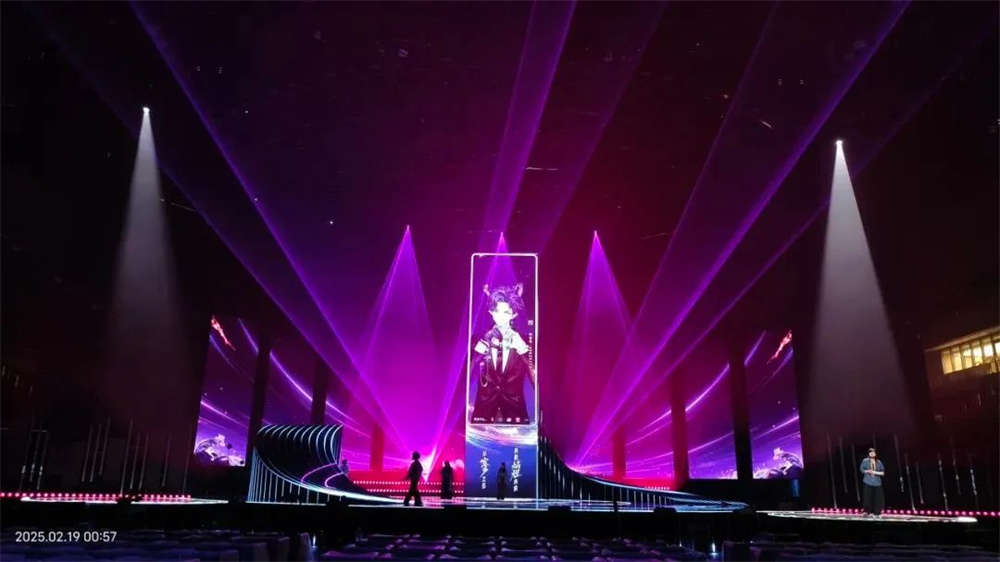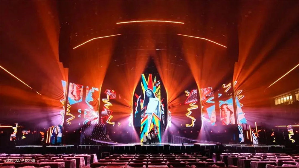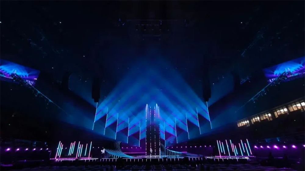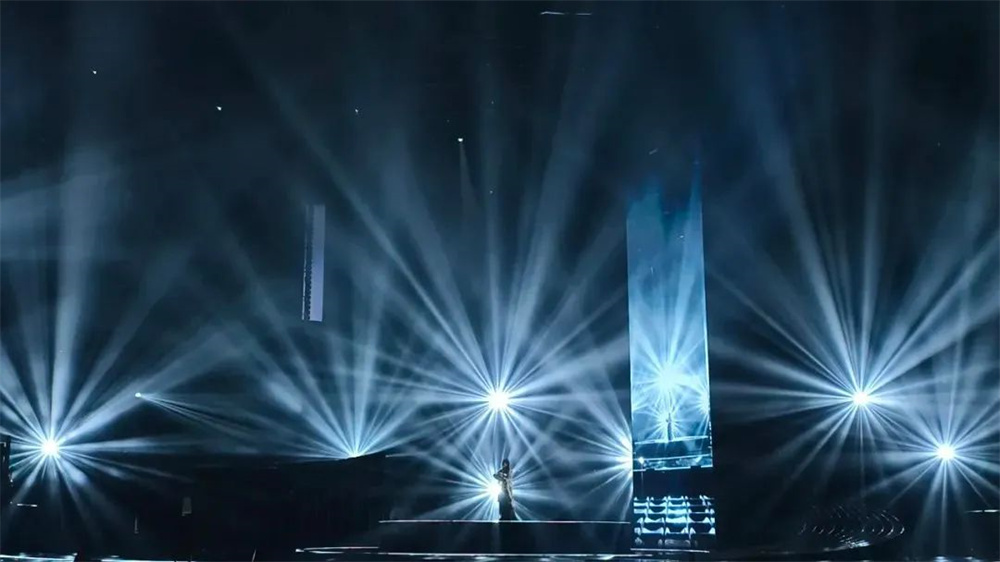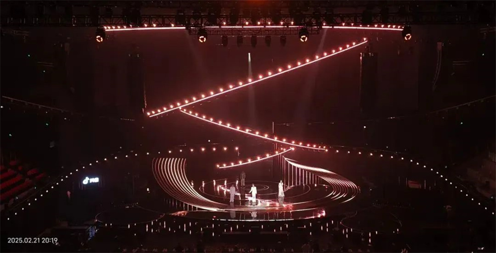 晚會燈光設計強調簡潔、清晰的線條感,以及功能性與美學的結合。通過精準的光影搭配與舞臺元素的協同作用,提升了表演的視覺沖擊力和情感共鳴。設計師巧妙運用光的物理屬性,在不同的表演段落中精準調控光束的方向、角度、色彩變化,細膩自然地引導觀眾情感隨表演變化而起伏,為觀眾創造融入感十足的視聽體驗。