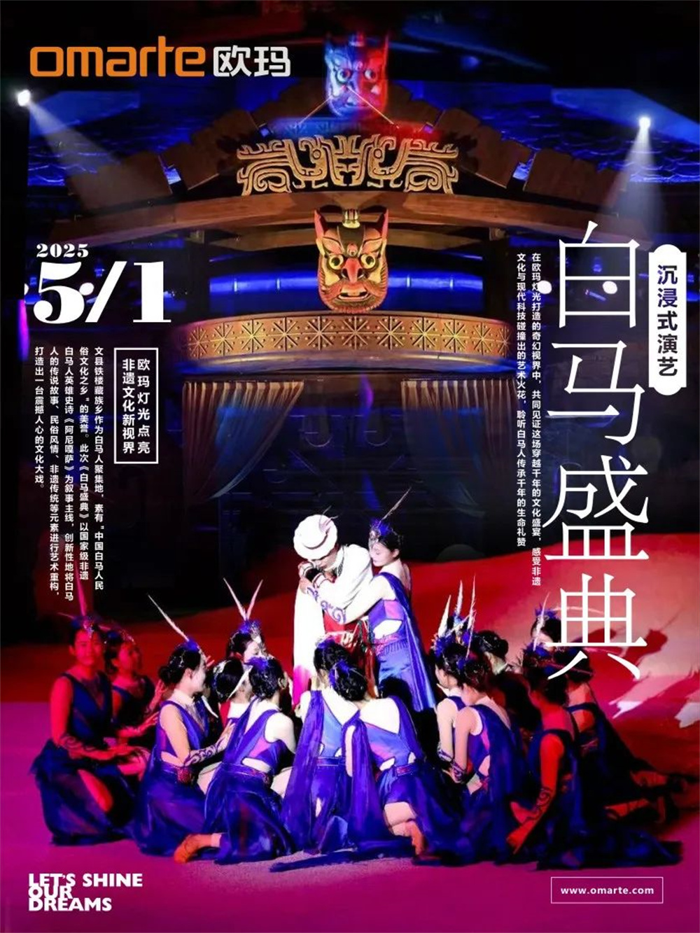 5月1日,讓我們相約文縣,在歐瑪燈光打造的奇幻視界中,共同見證這場穿越千年的文化盛宴,感受非遺文化與現代科技碰撞出的藝術火花,聆聽白馬人傳承千年的生命禮贊!
