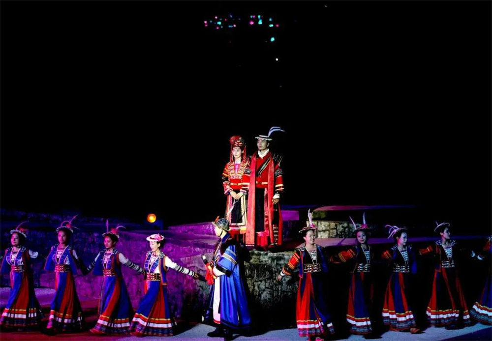 在歐瑪燈光絢麗多彩的加持下,白馬人的非遺文化得到前所未有的生動呈現: