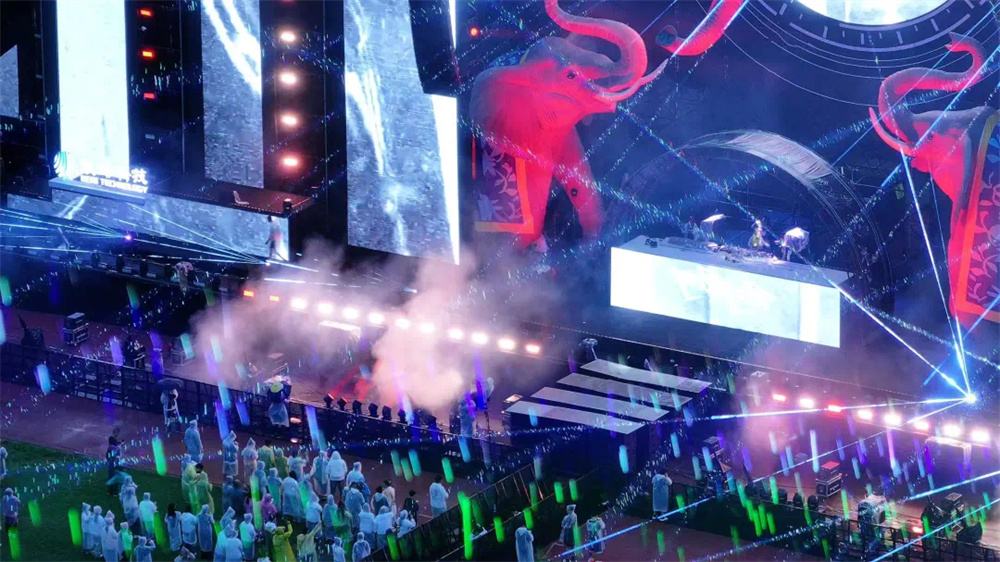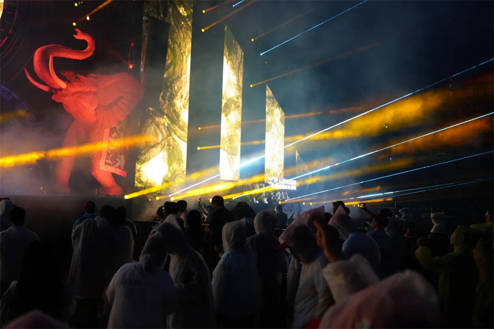 這場電音節不僅僅是一場視聽盛宴,更是一次文化交融與創新的實踐。通過精妙的光影設計,將西雙版納的傳統文化元素與現代電音舞臺完美融合。當“雨林戰神象圖騰” 舞臺上的巨型神象雕塑在燈光的渲染下,從古樸神秘變得栩栩如生,仿佛穿越千年時光,訴說著這片土地的傳奇故事;用光影為傳統文化注入新的生命力,讓其在現代科技的舞臺上綻放出更加絢爛的光彩。