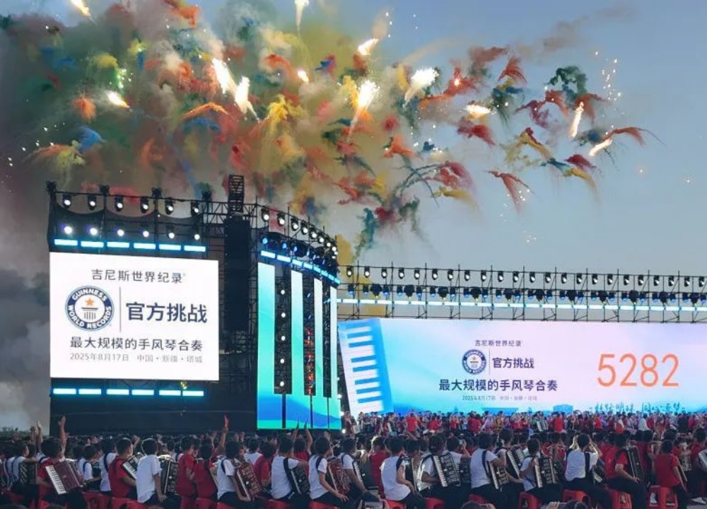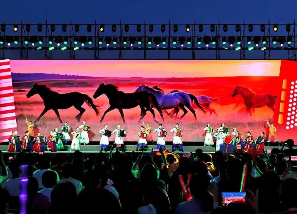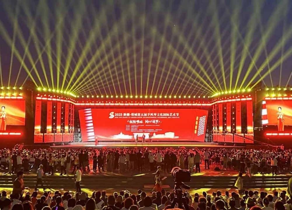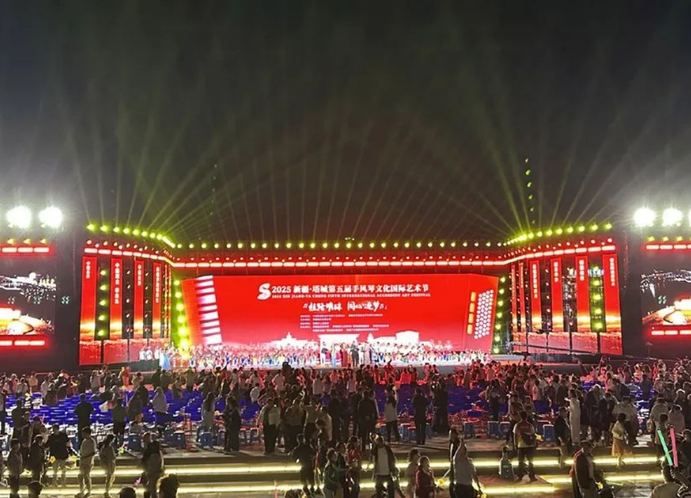 8月16日晚,新疆塔城千泉湖畔熱鬧非凡,2025新疆·塔城第五屆手風琴文化國際藝術節盛大開幕。