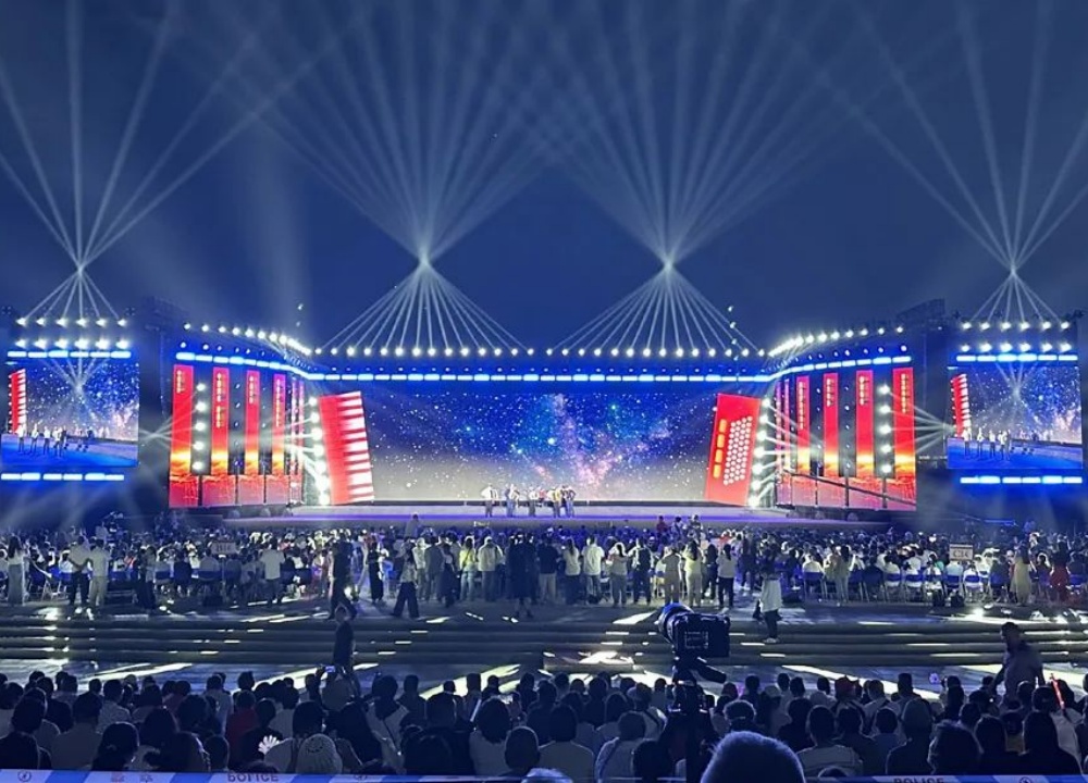 開幕式文藝表演中,100臺歐瑪防水搖頭染色燈與200臺防水光束燈大放異彩,和手風琴演奏交相輝映,為現場觀眾打造出一場視聽盛宴