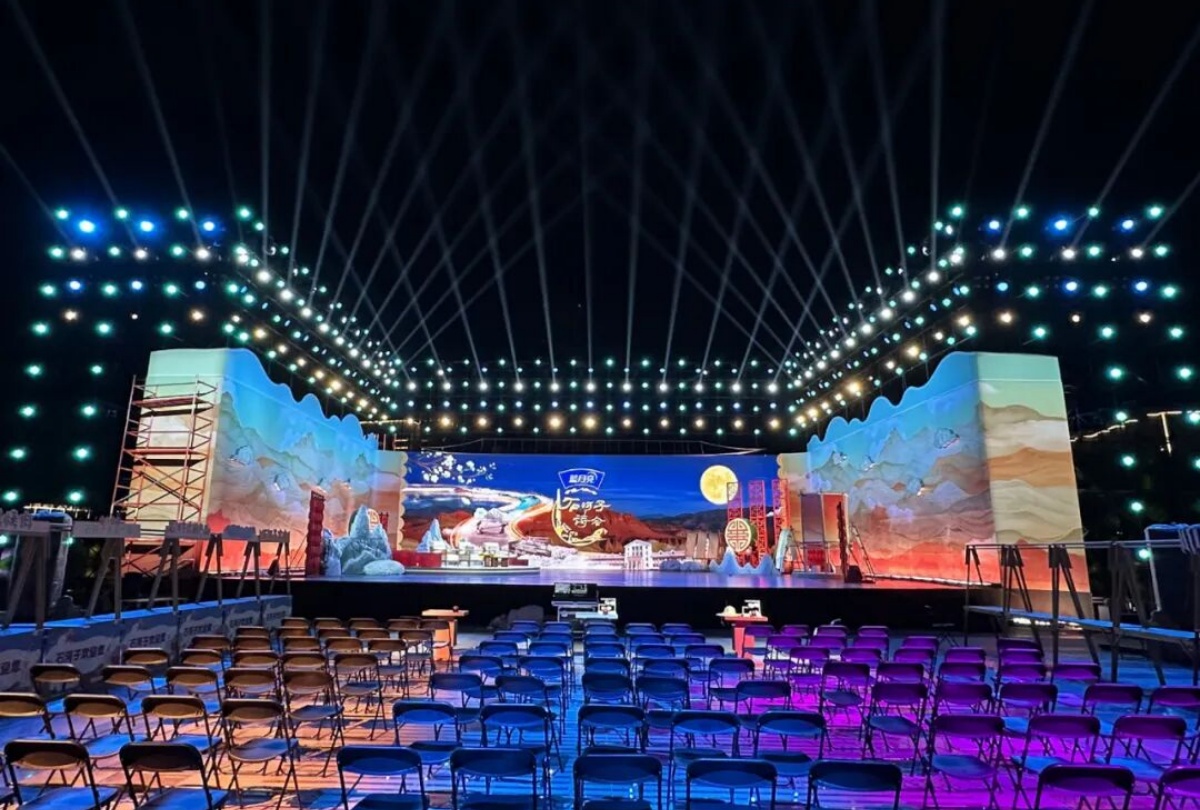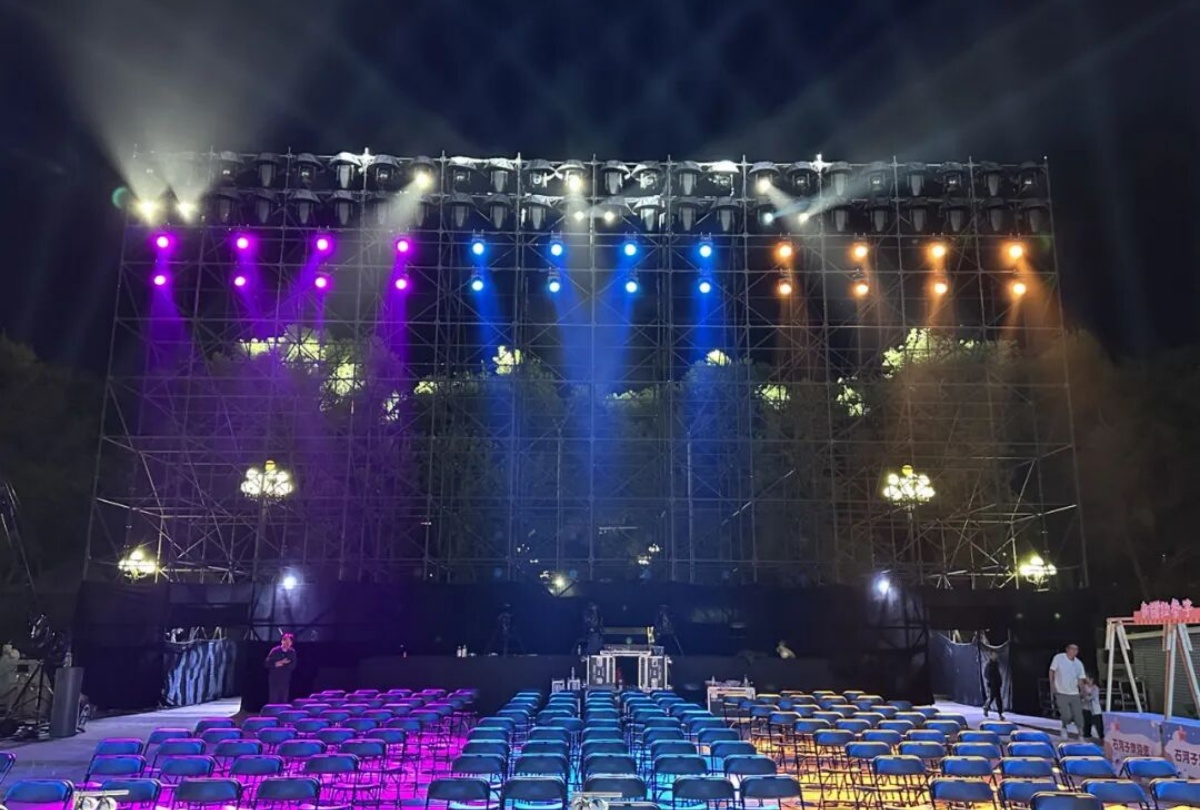 而這場文化盛宴的舞臺光彩,全由新疆大唐盛業聯合歐瑪燈光打造——近500臺歐瑪旗艦設備強勢助陣,其中防水光束燈以精準銳利的光效劃破邊疆夜色,切割燈靈活勾勒出詩與舞臺的立體輪廓,LED染色燈則將“戈壁明珠”的璀璨與軍墾情懷的厚重鋪滿全場,讓千年詩韻與兵團精神在光影流轉中實現深度交融。