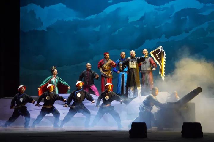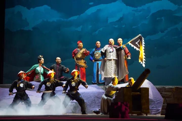 整場戲劇分為華堂之喜、臨危赴臺、直奔臺南、拒任總統(tǒng)、兩岸相思、誓死保臺、壯志未酬、欽州之光共八個場次,層層激進(jìn)重現(xiàn)民族英雄抗擊倭寇的艱辛之路,濃墨重彩勾勒出劉永福英勇果敢、浴血奮戰(zhàn)的英雄形象,詮釋劉永福率領(lǐng)黑旗軍和臺灣民眾抗日保臺的愛國情、戰(zhàn)友情、兩岸同胞情。