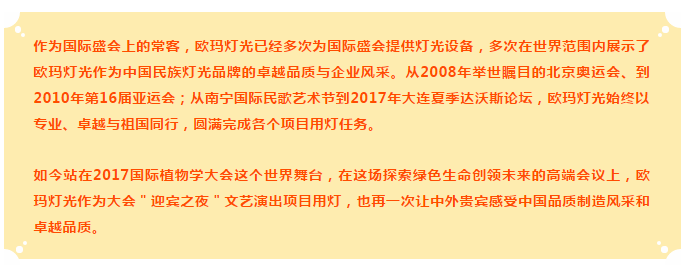 歐瑪燈光璀璨綻放第十九屆國際植物學大會"迎賓之夜"文藝演出,與近2500位來自世界各地的植物業界權威專家、科學使者,一起感受東道主的熱情以及濃郁的中國元素。