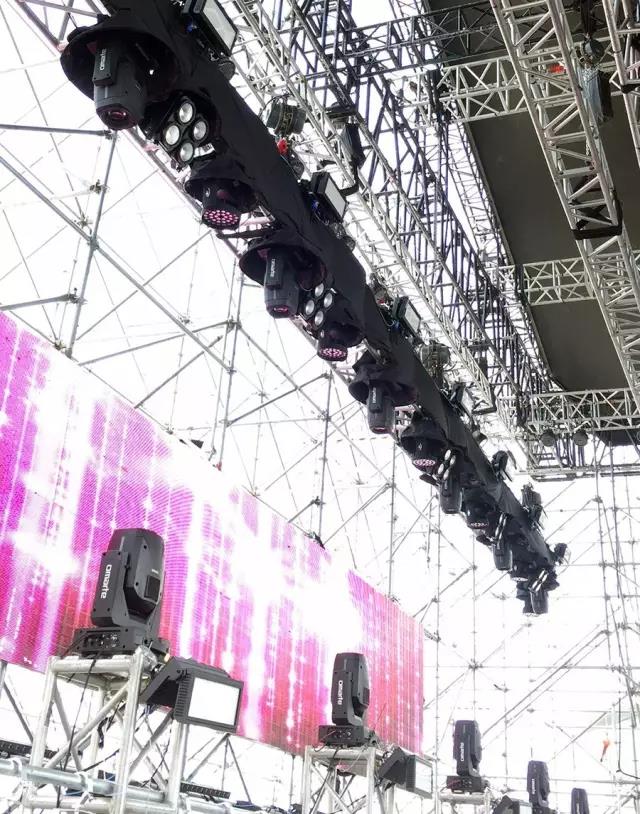 Omarte歐瑪的合作伙伴蘇州泓源舞臺燈光工程有限公司承接了本次2017上海超級草莓音樂節的整體工程并在燈光系統工程中經過綜合設計、考慮后,決定采用Omarte歐瑪三合一電腦燈MOORE330BEAM、電腦搖頭光束燈MOORE260、1500W搖頭染色燈OA3500WASH、1500W搖頭圖案燈OA3500SPOT、搖頭染色燈LED904。