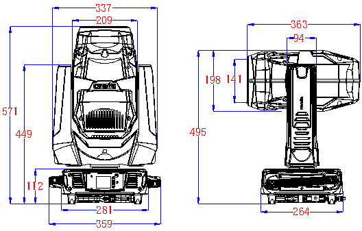 Dimmer & Strobe: 0-100% linear electronic dimmer, fast electronic strobe