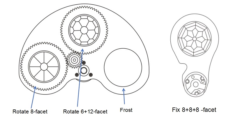 lPrism 1:?rotating 8-facet prism + 6+12-facet prism + frost;