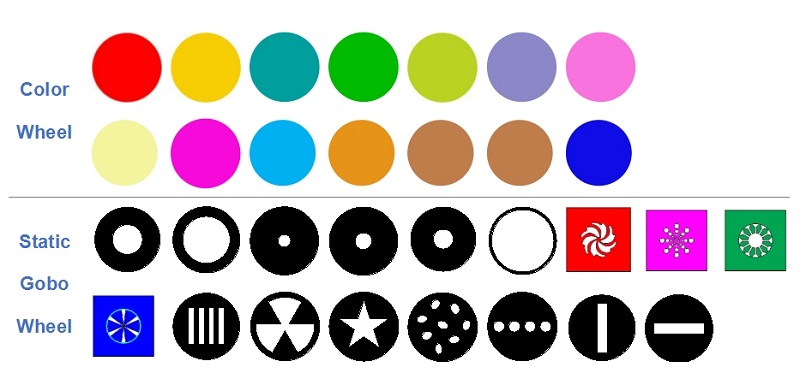 Color: One 14-color wheel + blank, with bidirectional rotation rainbow effect;