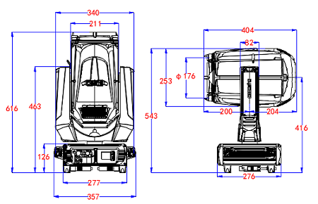 Dimmer & Strobe: 0-100% linear electronic dimmer, fast electronic strobe