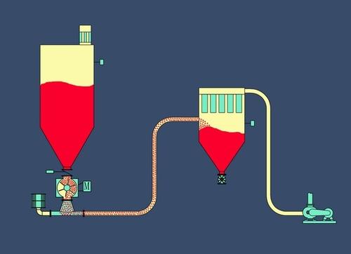 密相氣力輸送原理:密相輸送時,顆粒在少量氣體松弛的流動狀態(tài)下進行集體運動,但不是氣體引起的加速,而是通過靜壓差移動。在供給過程中,物料通過氣動閥重力進料到發(fā)送罐中,置換出的空氣通過排氣閥排出。發(fā)送罐液位計的高警報后,進料完成,進料閥門與排氣閥門同時被關(guān)閉,而后通過進氣閥向發(fā)送罐頂部及底部加入壓縮氣,加人的壓縮氣與物料相混合,罐內(nèi)的壓力達到設(shè)定值時便自動打開底部出料閥,然后物料以栓狀流形式輸送,直至物料排空,關(guān)閉出料閥,完成一次輸送循環(huán),繼續(xù)進行下一次輸送循環(huán)。密相發(fā)送罐氣力輸送有單發(fā)送罐輸送和雙發(fā)送罐輸送:單發(fā)送罐輸送,物料在管道內(nèi)不是被連續(xù)輸送;雙發(fā)送罐輸送,因為其中一個發(fā)送罐輸送,另一個發(fā)送罐進料,兩個發(fā)送罐交替操作,物料在管道內(nèi)連續(xù)輸送,可以連續(xù)生產(chǎn)。輸送氣體常采用空氣和氮氣,動力一般由壓縮機供給。
