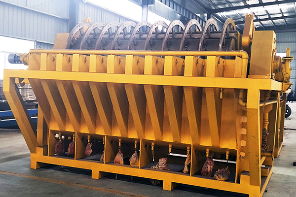 陶瓷過濾機是礦山特別是選礦廠采用浮選或磁選技術常用的一種高效節能的過濾設備。陶瓷過濾機分為吸漿區、干燥區、卸料區和反沖洗區。當陶瓷過濾機開始工作時,濾板浸入漿料槽中。在真空作用下,懸浮在漿槽中的精礦顆粒被吸附在濾板上,固體物料被截留在濾板上,濾液通過濾板。循環(多余部分也會排出);濾板離開漿槽進入干燥區,濾餅在真空作用下繼續脫水;干燥卸料區裝有刮板,用于刮除濾餅;卸料完成,濾板進入反沖洗區,過濾后的水通過分配頭進入濾板,反沖洗濾板以洗掉堵塞在微孔中的顆粒,完成一個過濾操作循環。