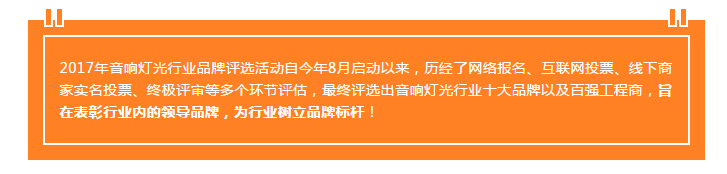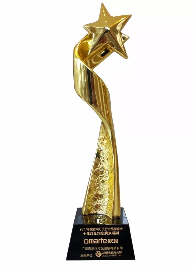 據評選組委會介紹,這一獎項獲得需要嚴苛的條件,優質的產品、完善的服務及較高的品牌影響力,三者缺一不可。經過激烈的角逐,歐瑪燈光在眾多參選企業中脫穎而出,一舉獲得“十佳燈光燈控(民族)品牌”獎。歐瑪燈光連續多年榮獲行業十佳品牌殊榮,彰顯了歐瑪燈光民族品牌的實力與魅力!