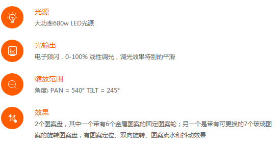 ·?2個圖案盤,其中一個帶有6個金屬圖案的固定圖案輪;另一個是帶有可更換的7個玻璃圖案的旋轉圖案盤,有圖案定位、雙向旋轉、圖案流水和抖動效果
