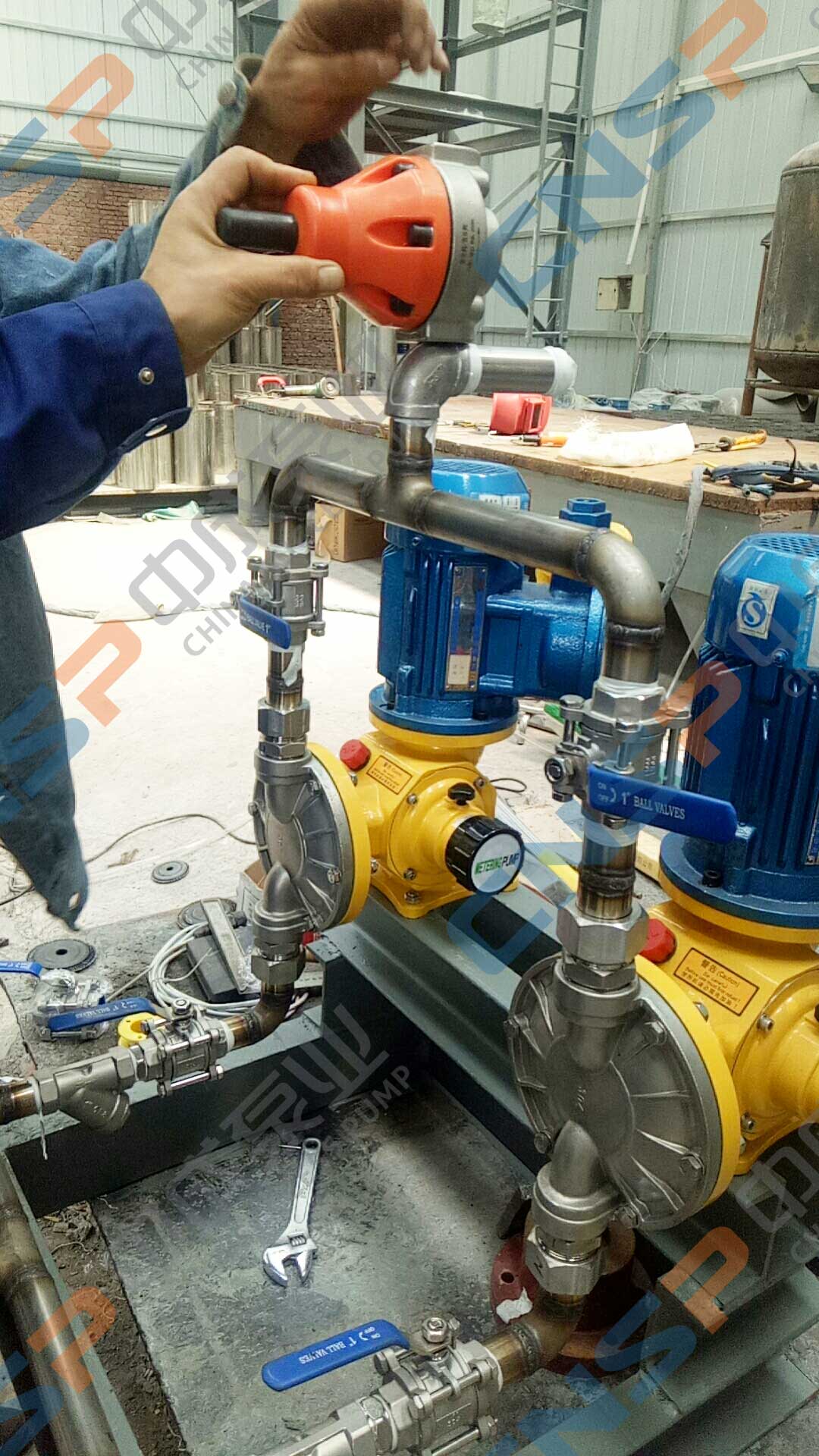 河北某節(jié)能技術(shù)公司是我廠長期合作伙伴,近期在我廠采購一批計量泵,型號為GM-500/0.5,我方指導(dǎo)客戶安裝以保證客戶的設(shè)備從開機調(diào)試起正常運行。中成泵業(yè)經(jīng)考驗的項目管理體系及豐富的安裝經(jīng)驗可確保客戶的設(shè)備發(fā)揮最大的價值,正確的安裝是長期穩(wěn)定運行的基礎(chǔ)。