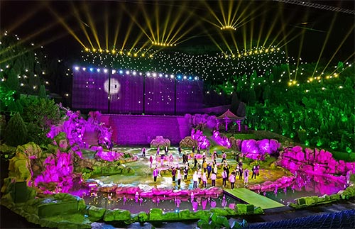大石崮森林公園舞臺(tái)燈光是精修,應(yīng)用多種舞臺(tái)設(shè)備打造高檔舞臺(tái)效果,使用了LED搖頭燈,LED聚光燈等燈光設(shè)備