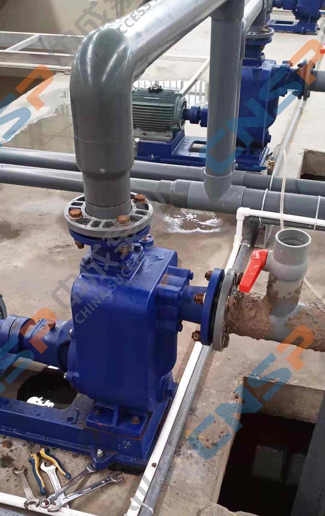 安徽某環??萍加邢薰臼且患乙惑w化的環??萍计髽I,在我廠采購了一批自吸排污泵和管道離心泵用于污水處理。由于客戶現場管路為新管路未沖洗,管路內存在焊渣干磨導致漏水聯系我廠售后,我廠技術人員建議客戶自吸排污泵更換拍門,管道離心泵更換機封,技術人員指導客戶更換后產品運行正常。